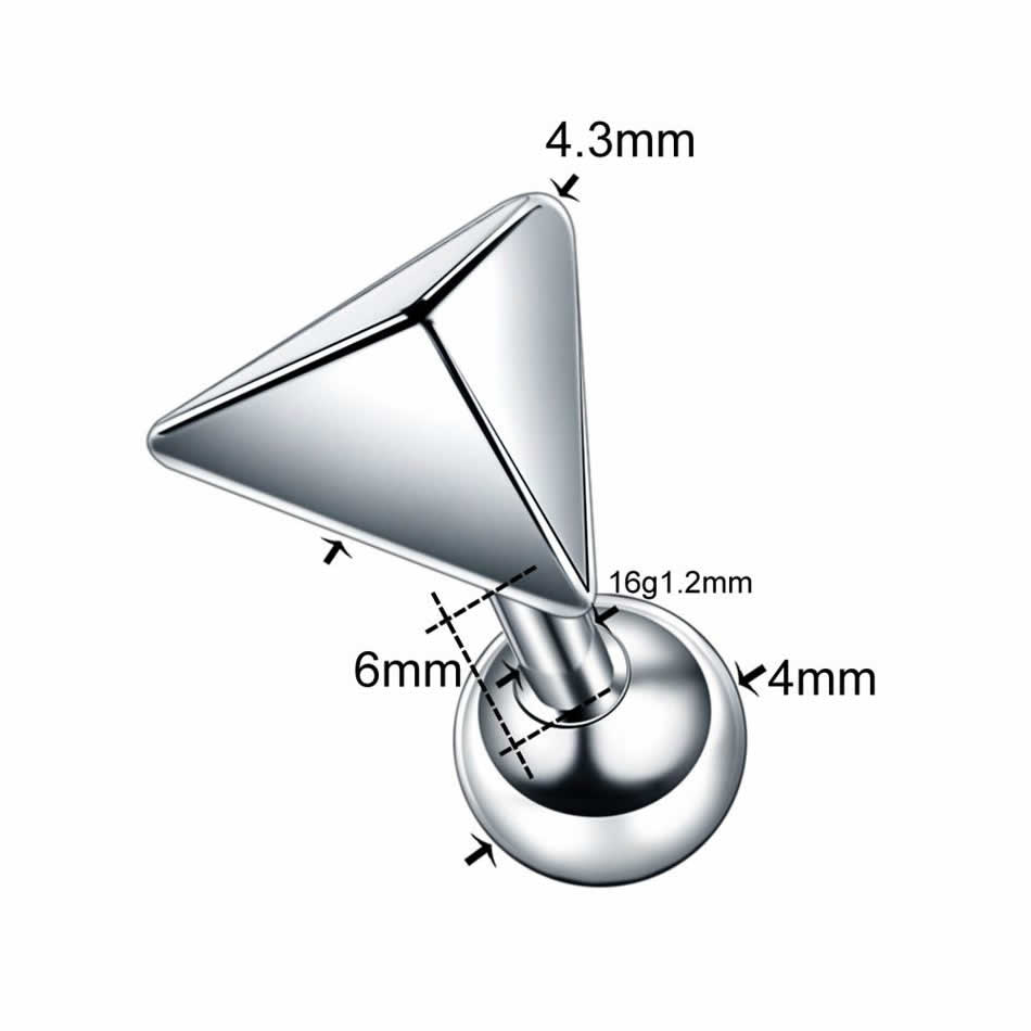 ピラミッド型の三角錐のパーツをセットした16ゲージのストレートバーベル型ボディピアス。
