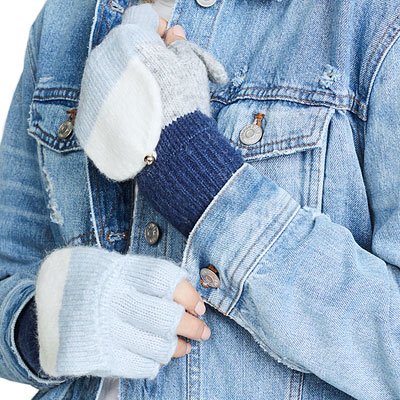カラー ブルー×オフホワイト×グレー 仕様 ミトンの部分を取り外して、スマートフォン(スマホ、タッチパネル)の操作が可能です。
