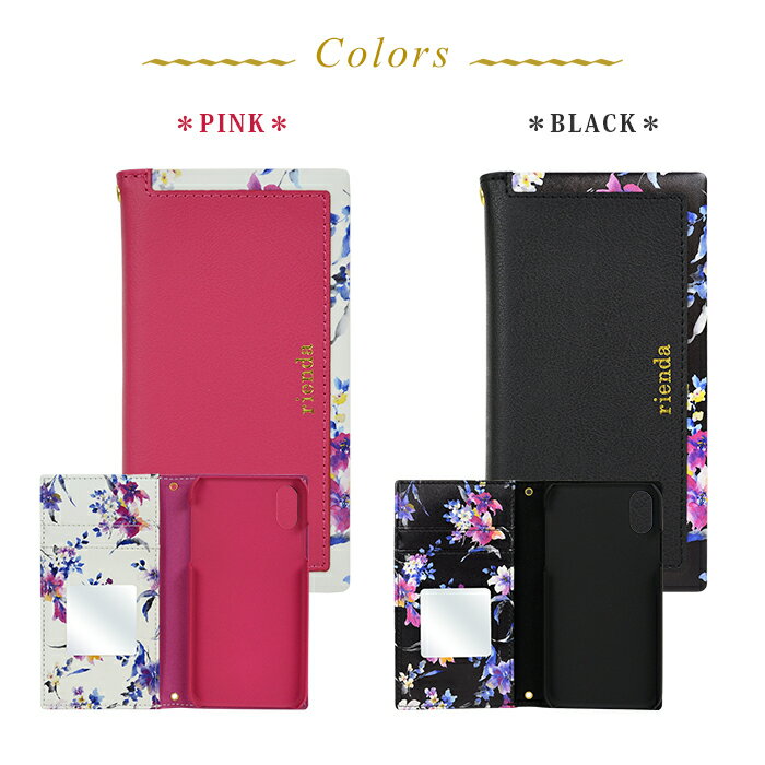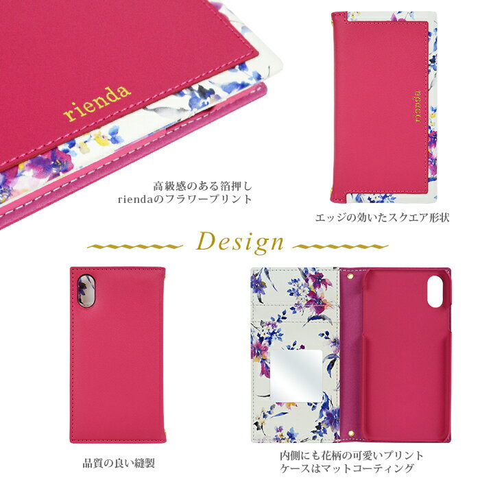rienda(リエンダ)の人気商品「ブラーフラワー」が iPhoneXR 6.1インチ でもラインナップ! 高級感のあるゴールド色の箔押しと、手帳の内側にも花柄をあしらったこだわりのデザイン。