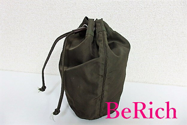 プラダ PRADA 巾着 ポーチ カーキ ナイロン レザー ロゴ 三角 プレート ポコノ コスメ 化粧 アクセサリー 小物 【中古】【送料無料】 bc1168