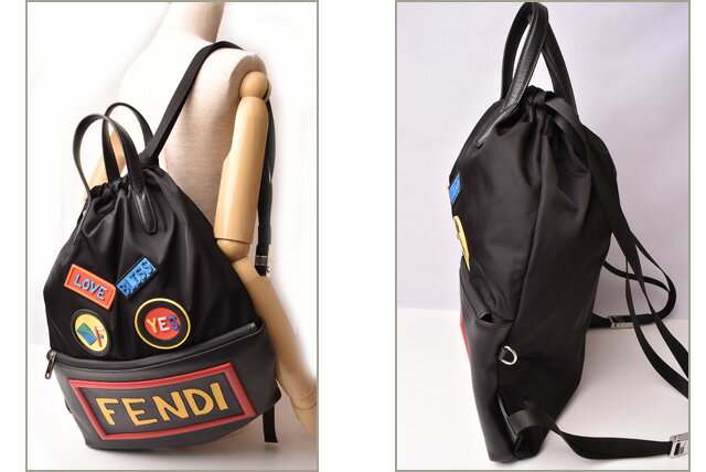 【クーポンGETで最大2千円OFF】フェンディ バックパック/リュックサック FENDI フェイス 2WAY巾着 ナップサック ナイロン/レザー パッチワーク ブラック 7VZ034 1OQ F0JBX【中古】 父の日