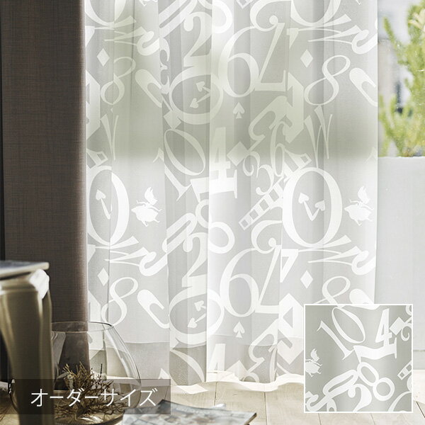 イージーオーダーカーテン ディズニー 「アリス クロック」 シアーカーテン/ウォッシャブル/レースカーテン/数字/ホワイト